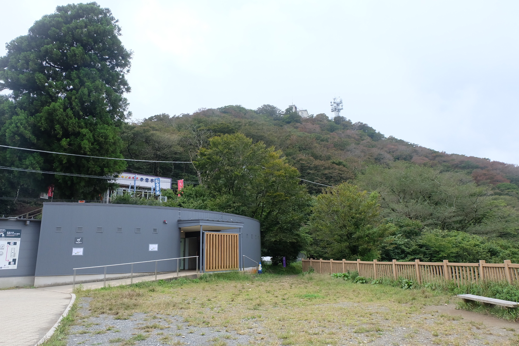 登山口付近には、駐車場、飲食店、売店、ホテル、トイレ、ケーブルカーの駅、観光案内所が備わっており、山頂付近にも飲食店やトイレがある。