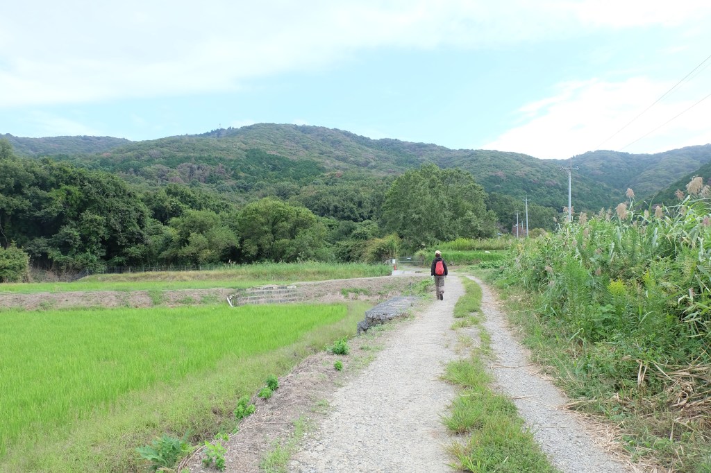 極楽寺コースは、頂上まで最短距離で登ることができ、始めは田んぼ道を進み登山口まで行き、そこからは沢の側を登っていくのが特徴。