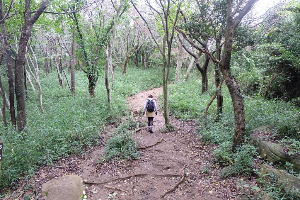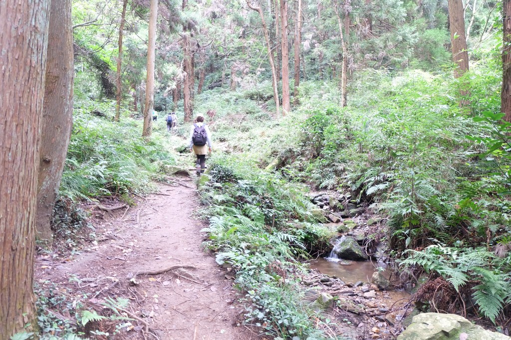 頂上では40分休憩し、下山を始めた。登ってきた極楽寺コースとは別の小田城コースを選択。