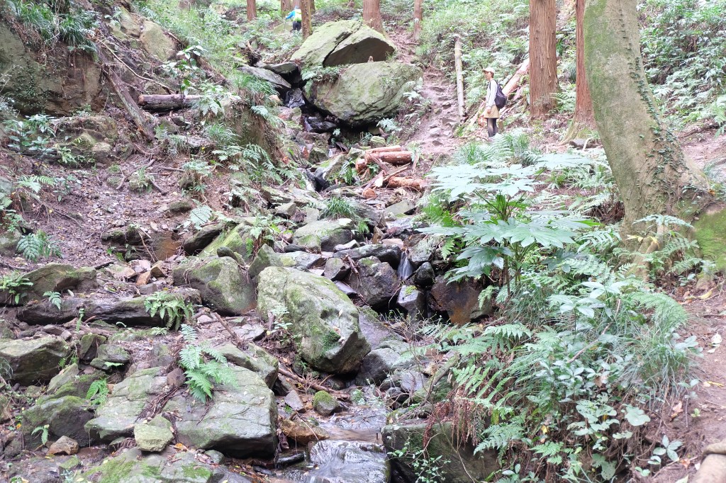 30分くらいで沢を超えると2/5の行程が終わる。その後は急な登り坂が500mくらい続く。ここが一番息が上がる場所である。
